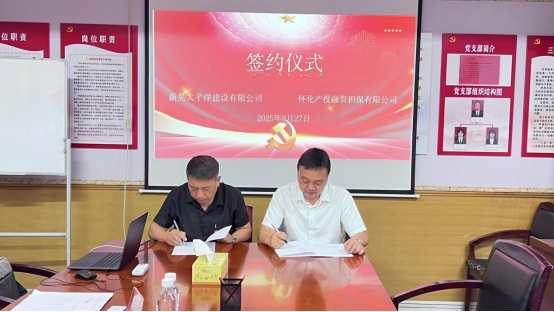 8月27日,怀化产投融资担保有限公司与新晃太平洋建设有限公司正式签署融资担保合作协议,标志着市本级政府性融资担保机构首笔面向民营企业的担保业务成功落地。怀化产投融资担保有限公司董事长毛建、新晃太平洋建设有限公司负责人吴军等出席签约仪式。