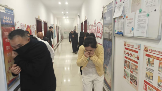 15时整,演练正式启动。艾叶模拟的烟雾弹释放后现场浓烟弥漫,警报声同步拉响,全体员工迅速响应,捂住口鼻,按预定方案分左右两排沿疏散楼梯有序撤离,全程无推挤、无喧哗,快速抵达指定集合点后,工作人员即刻清点人数确认全员安全。疏散演练结束后,灭火演习接续开展,教员现场演示干粉灭火器“提、拔、握、压”四字要诀,员工分组实操,面对铁桶中燃烧的易燃物品沉着处置,切实掌握了初期火灾扑救技能。