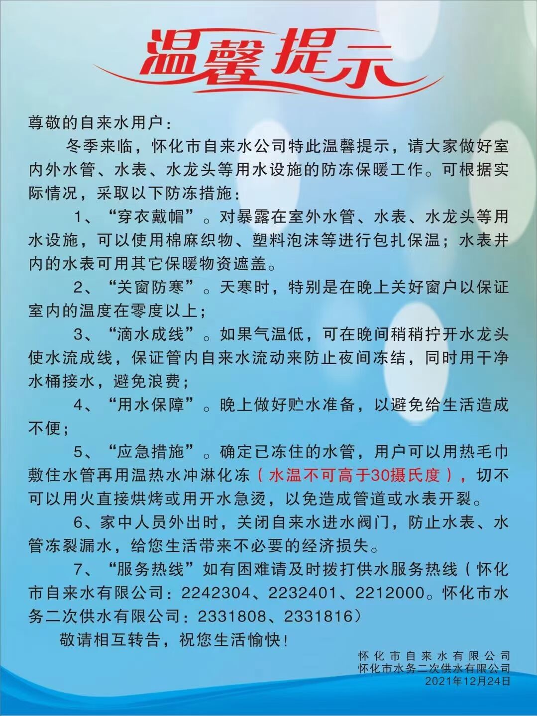 气温降至,温馨提醒您做好供水设施防冻措施!