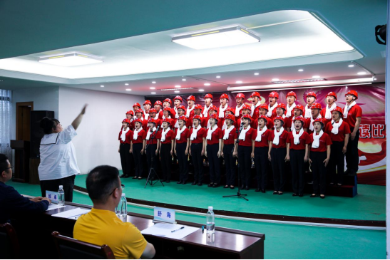 在歌咏比赛过程中,来自市自来水有限公司机关支部、生产支部、经营支部、三产支部等四个党支部的党员着装整齐,气势昂扬,依次登台,用积极饱满的激情和高亢嘹亮的歌声赞美伟大的党和国家,带领现场观众一起重温了那段激情燃烧的岁月。最后,来自经营党支部的《咱们工人有力量+社会主义好》获得最佳组织奖。