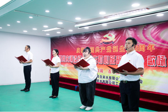 一百年风雨历程,一百年峥嵘岁月。为重温党的光辉历程,喜迎中国共产党百年华诞,5月26日,市水务集团自来水有限公司举行“重温党史诵读经典、不忘初心砥砺前行”诵读、歌咏比赛。公司员工相聚一堂,用诵读、歌唱的方式,读党史、念党恩、跟党走,上了一堂深刻的红色党史教育课。