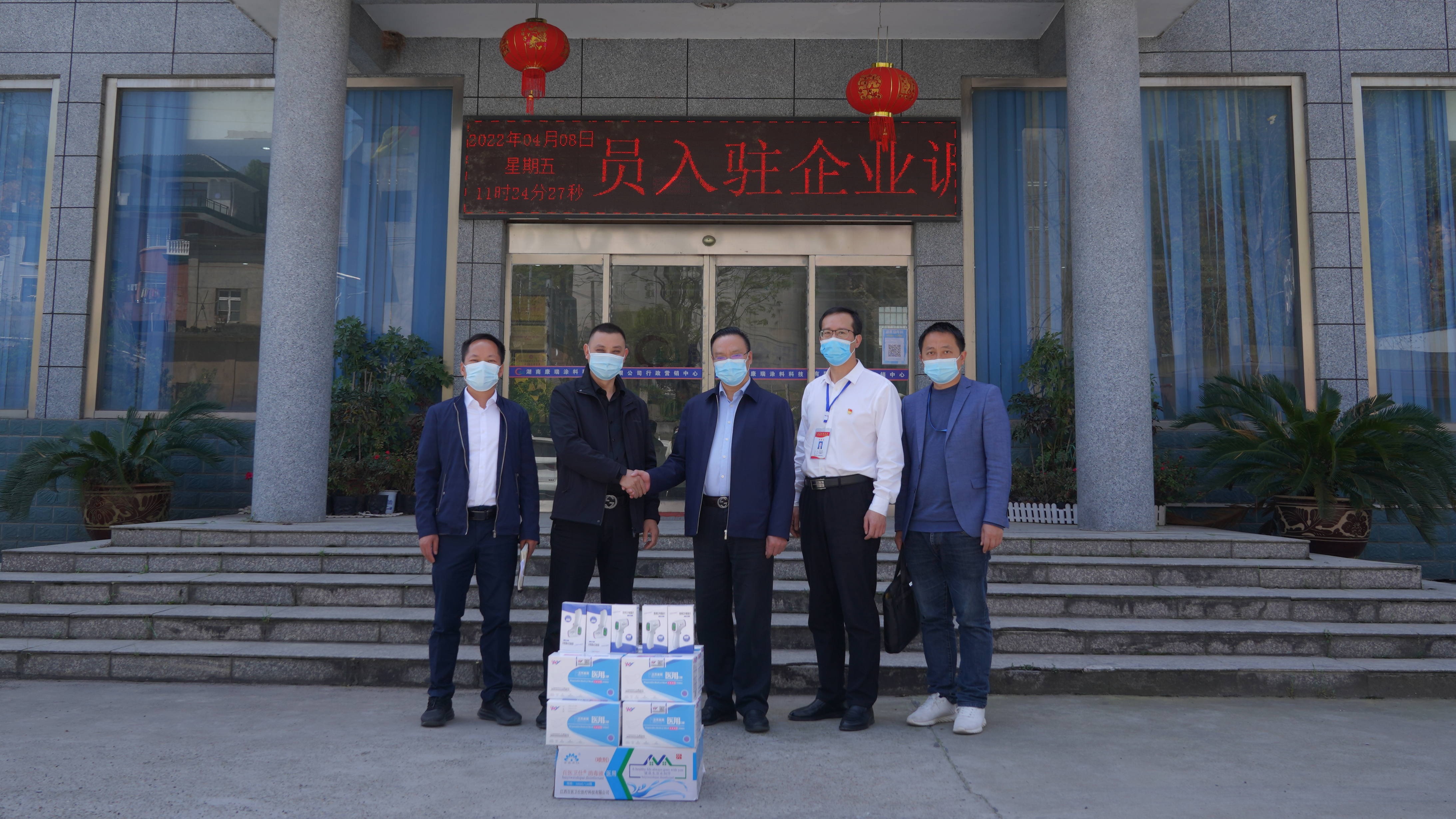 4月8日,怀化市水务投资集团有限公司党委书记、董事长杨秀和、市帮扶企业办康瑞涂料公司特派员申湘平一行到市重点工业企业集团帮扶对象——湖南康瑞涂料科技有限公司捐赠防疫物资,调研复工复产和企业发展工作。