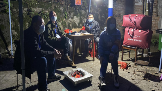 (图为刘敏同志与防疫志愿者在中铁五局电务处家属院值勤)