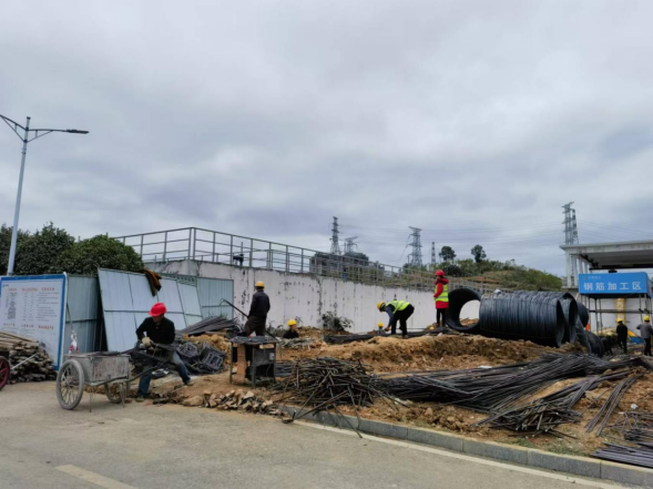 (城东污水处理厂光伏项目的承台地梁钢筋制作现场)